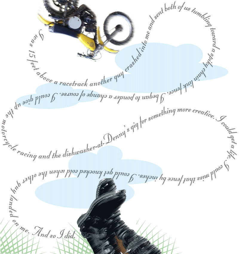 is my second-favorite activity. My third-favorite thing was motocross racing. See above. Facing retirement at 19, I decided