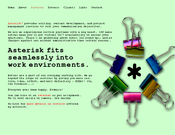 for Wall Street and technology firms. They wrote the web site while I rummaged through drawers for the office supplies I used to create the images.